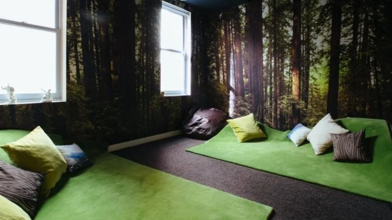 Employees offer “mindfulness zones,” designed to mimic a Japanese zen rooms. They are designated as tech-free, which means you have to put your personal devices in a bin before you enter.